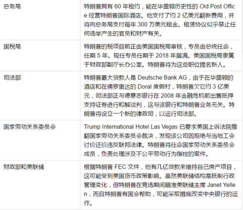 美国政府机构此前一直在审查特朗普的业务。当选总统前,特朗普、特朗普公司和他的金融合作伙伴被卷入了几件联邦调查事件,涉及数十亿美元,可能面临刑事指控。