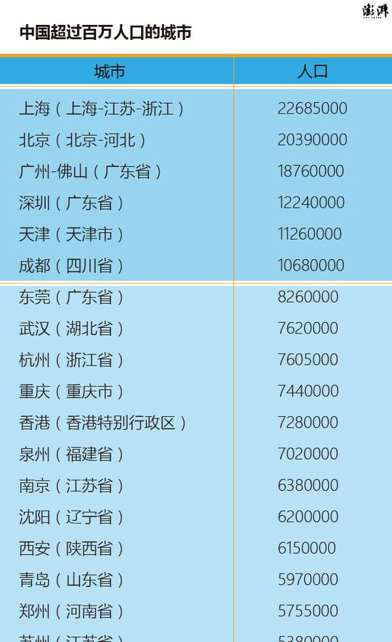 中国人口超过百万的城市列表,制图:刘筝,数据来源:卫报 Demographia