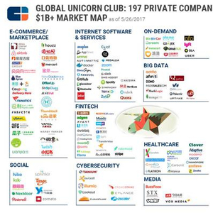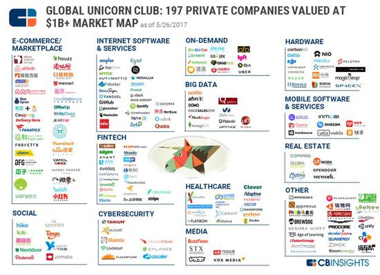 新浪美股讯 北京时间5日早间消息, CB Insights近日发布全球最具价值的197家私营(未公开上市)科技创业公司榜单,这些公司都是估值超过10亿美元的所谓“独角兽”公司。