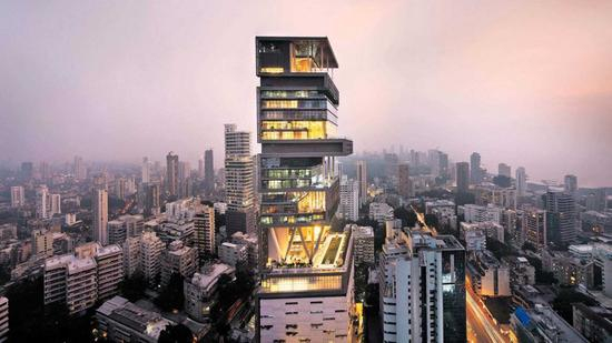 3. 印度首富穆克什-安巴尼建造的全球最贵私人住宅Antilia,高27层,建成于2006年,造价约10亿美元。
