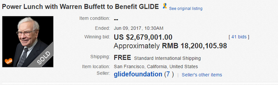 这是巴菲特连续第18年举行慈善午餐拍卖,去年,巴菲特慈善午餐以345.6789万美元落锤,持平2012年的历史最高价。今年拍出的价格虽然回落,但拍卖过程同样激烈,拍卖在开始不到2分钟价格就突破100万美元大关,只经过了短短7次报价。