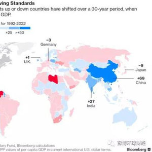 除了中国以外,印度、韩国和印尼等其他一些G-20成员国预计到2022年也将实现人均GDP较1992年取得双位数的提升。美国在全球的排名则将继续保持在第10名不变,另外还有10个成员国的排名会出现下降。