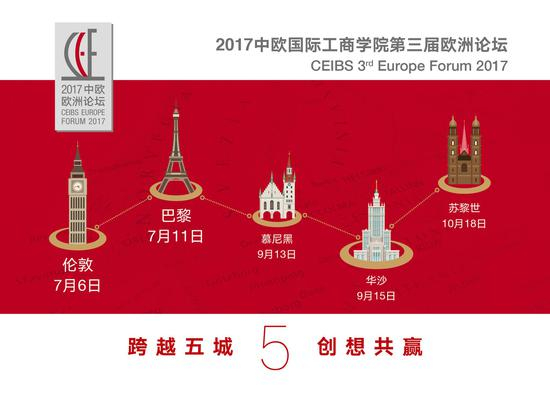 今年7月—10月,2017中欧国际第三届欧洲论坛将再次深入欧洲腹地,先后登陆英国、法国、德国、波兰、瑞士等欧洲五国,跨越五城,创想共赢,搭建中欧企业间经贸往来的交流平台,为欧洲企业发现和捕捉中国经济增长中的商业机遇提供新思路。