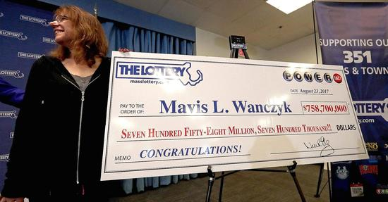 新浪美股讯 北京时间25日早间消息,据国外媒体报道,美国马萨诸塞州53岁女子Mavis Wanczyk希望能提前退休,一夜之间,她的梦想突然实现了:她中了强力球(Powerball)彩票的头奖,奖金是7.587亿美元!