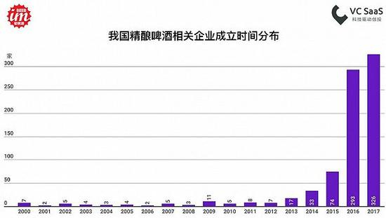中国独立的啤酒厂和啤酒屋开始层出不穷,比如拳击猫、京A、酒花儿等等。从VC SaaS搜集的数据来看,2015年起,中国新成立的精酿啤酒相关企业出现了爆发式的增长。