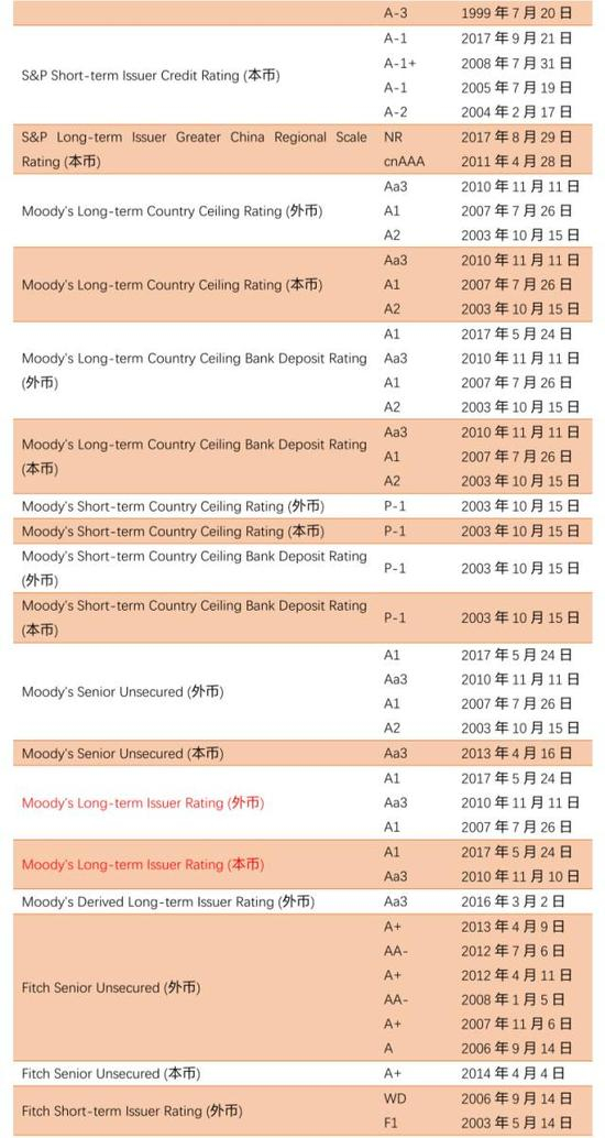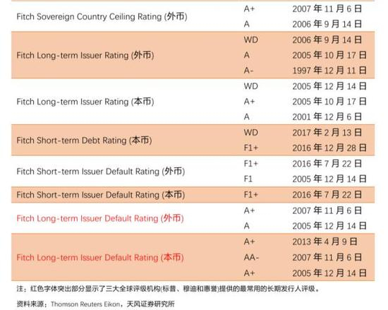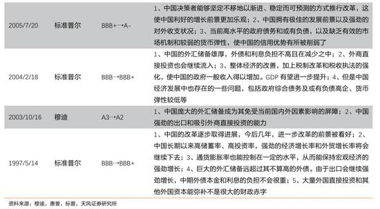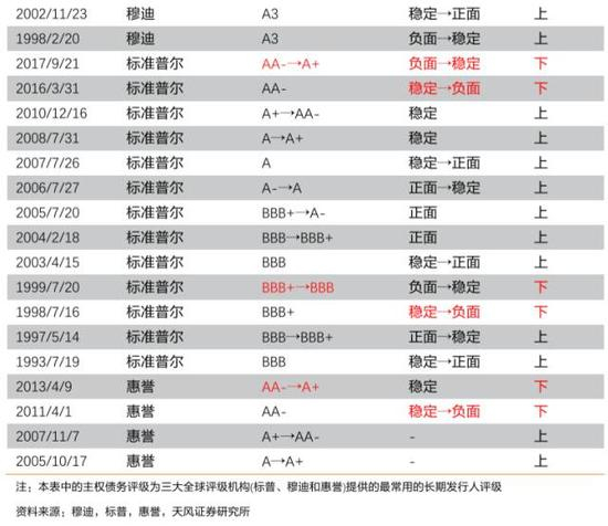 我们对国际上三大评级机构对中国主权历史评级做了相应梳理。