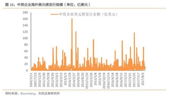 从中资企业海外发行美元债的规模来看,中国主权评级下调对企业去境外发债影响有限,2013年惠誉下调评级之后中资企业海外发债规模受到的负面影响不大。