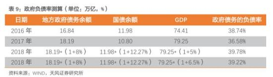 首先,我们对穆迪关于中国政府负债率的测算的合理性做一个判断。穆迪预测2018年中国政府的直接债务负担将逐渐占到GDP的40%,同时穆迪还认为中国GDP增长率未来5年增长率或将降至5%。如果按照这个统计口径,中国2018年GDP将达到约83.21万亿,我们假设地方政府债务和中央政府债务按照去年的增速增长,2018年政府债务余额将达到约33万亿,政府负债率为39.78%,与穆迪估计的40%的政府负债非常接近。因此,如果假设成立,政府债务负债率的确将占GDP的40%。