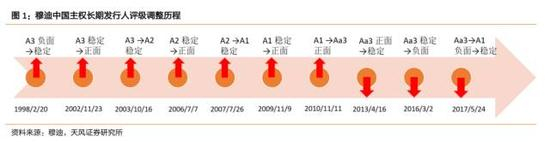 2017年5月24日,穆迪将中国本币和外币发行人评级从Aa3下调至A1。这是自1998年来,穆迪首次下调中国主权评级。