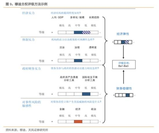穆迪主权债券评级主要是3步骤过程:1、国家经济弹性;2、政府的财务稳健性;3、确定评级。