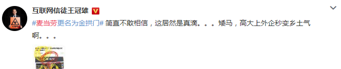 麦当劳官方微博这么回应:没错!麦麦的中国公司改名金拱门(中国)有限公司啦