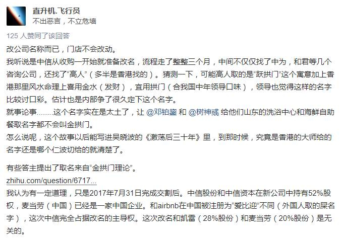 麦当劳为啥要改名?知乎的网友给了两种解释。