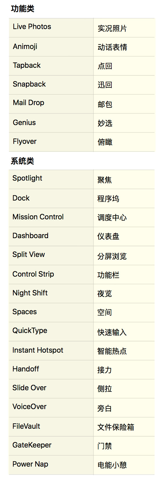 很多用户可能不太懂英文,看到苹果很多英文名称会有不适应。同类的还有,Mission Control——调度中心,Dock——程序坞,Launchpad——启动台 ,都是直接翻译自英文原意。