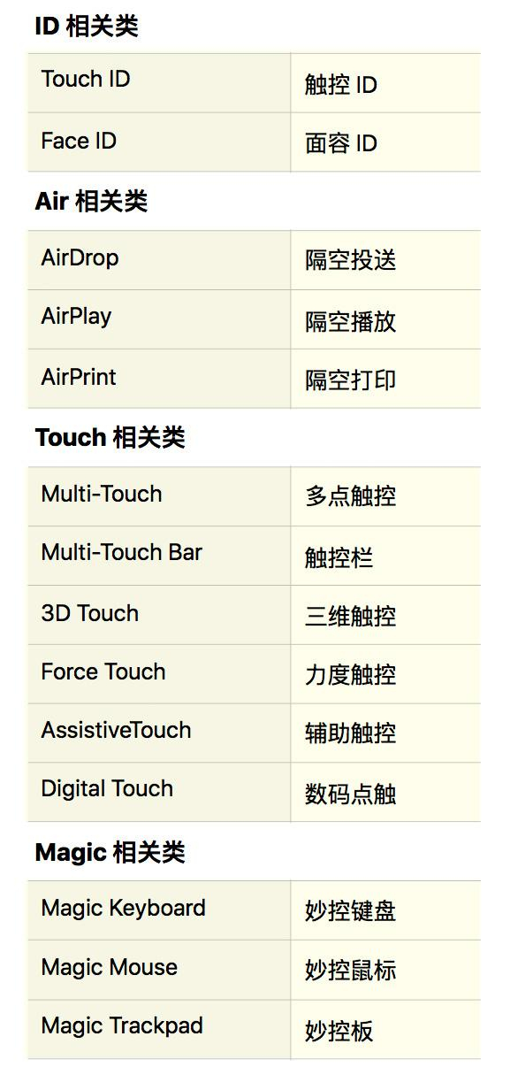 苹果这次中文翻译主要有这些规律: