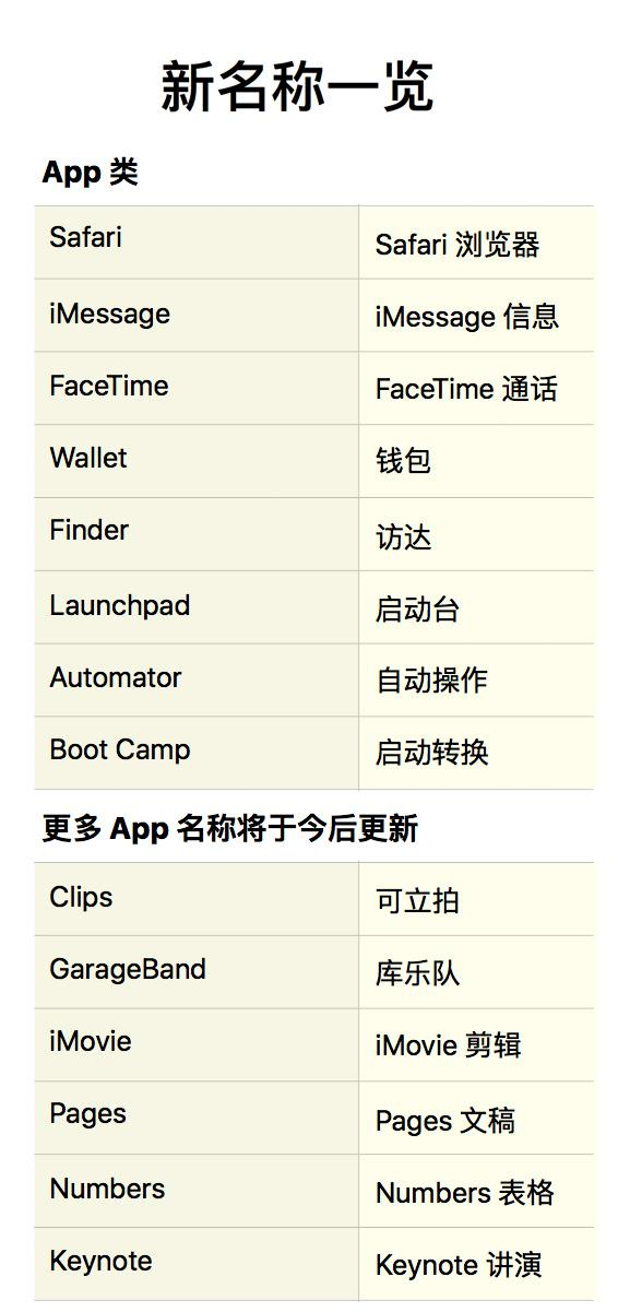 苹果公司旗下的产品、系统和应用采用全球统一英文命名,但在苹果近期即将推送的iOS、watchOS和macOS三大系统和相关应用中,中国用户将看到对应的“中文”名字。