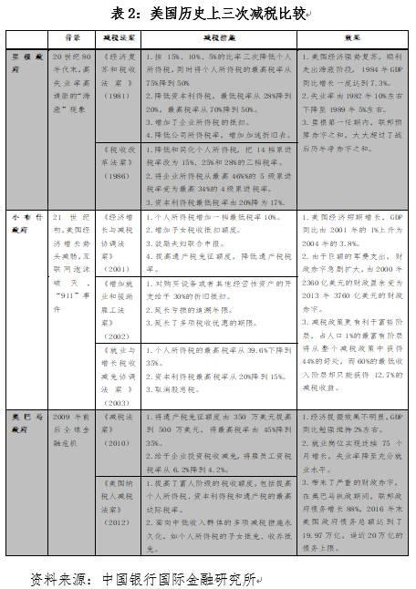 事实上,减税作为提振经济、扩大就业的手段在美国历史上曾多次使用(表2)。