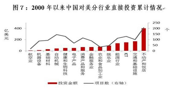 美国税收改革付诸实施后,企业成本大幅降低,部分中国企业可能将加速在美投资,短期中国资本外流压力将加剧。根据美国荣鼎集团统计数据,2000年-2017年二季度中国对美直接投资累计金额1348亿美元,流入的前五个行业分别是不动产和饭店、交通和基础设施、信息通信技术、能源以及娱乐业,占比超过70%(图7)。前面已经提到,交通、电信、银行等行业将在减税过程中明显受益,因此,中资企业将进一步增加这些行业的直接投资,强者愈强。尽管美国消费零售、媒体娱乐业也是减税重要利好行业,但考虑到国务院于8月颁发了《关于进一步引导和规范境外投资方向的指导意见》,将房地产、酒店、影城、娱乐业、体育俱乐部等境外投资列入境外限制类投资,预计这类投资将大幅减少。此消彼长之下,预计中国企业对美投资总额不会急剧飙升,利好更多是在短期,表现在股权和债权等间接投资和热钱流动上,长期直接投资不会出现剧烈变化。