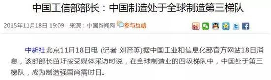 苗部长只是说“在全球制造业四级梯队中,中国处于第三梯队,成为制造强国尚需时日”