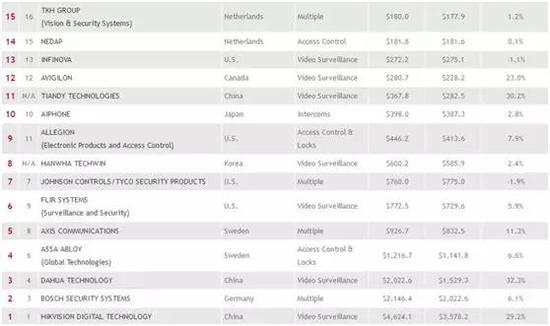 除了这两家公司以外,还有一家中国公司天地伟业排在世界第11位,增速高达30.2%,遥遥领先前15强的所有国外公司。