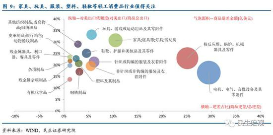 贸易逆差越大、出口对美依赖度越高的行业受影响最大,机械、家电、家具、玩具、鞋靴、服装等行业需引起关注。
