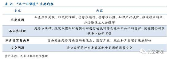 美国发起“九十日调查”。“九十日调查”是17年3月31日由特朗普签署的两项总统令之一,要求商务部和贸易代表办公室在90天内,对美国所有存在严重贸易赤字的贸易伙伴国家逐一展开调查,并提交综合性报告。此次调查结果将直接作用于未来美国的贸易政策趋势走向和实施细节,可以理解为美国采取贸易保护措施前的一次摸底。我国是美国贸易逆差的最大来源国,自然成为了重点调查对象。