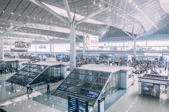 中国大多数高铁站看起来更像机场,例如下面是我拍摄的西安高铁站,它拥有高高的天花板、充满科幻感的设计风格,以及宽阔的室内空间。