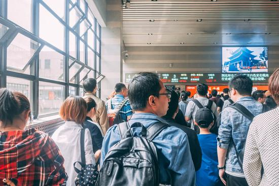 相比之下,北京西站就有些拥挤了。这是周五下午,去西安的旅客很多。