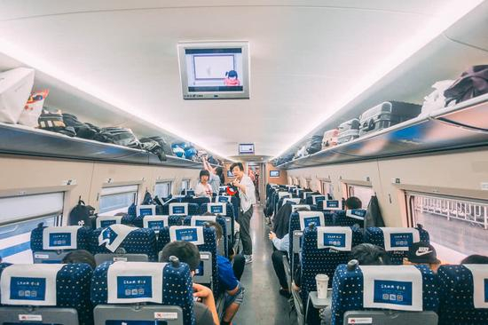 很多人安逸地坐在那儿,因为就像飞机一样,每个人有自己的座位,完全不用争抢。但我是个急性子,这毕竟是我第一次坐高铁。