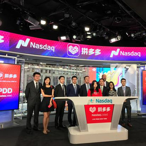 与其他赴美上市企业不大一样的是,拼多多选择了在上海、纽约进行两地同时敲钟的罕见方式,无一高管来到纽约。当天在纳斯达克交易所现场敲钟是另一家来自中国的公司,极光大数据。