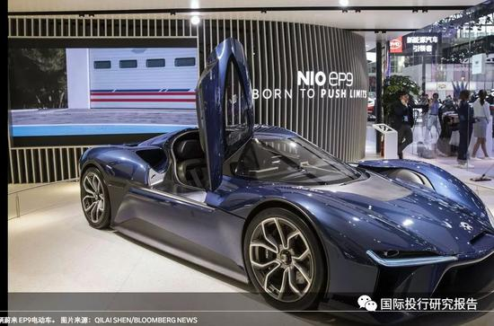 北京国际车展上的一辆蔚来 EP9电动车。