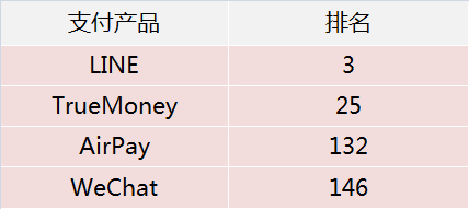 我们根据App Annie对泰国地区的支付产品的下载量,制作排行榜,见下图。