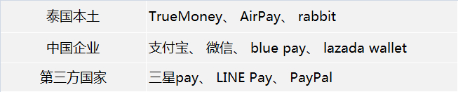 我们先将泰国移动支付产品按照所属国进行分类,见下表