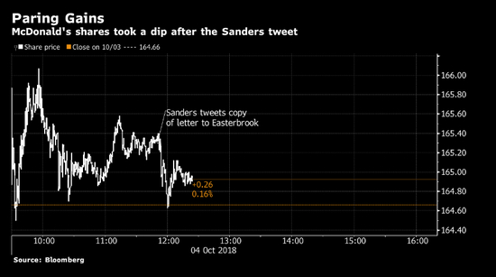 新浪美股讯 北京时间10月5日,据彭博社报道,在亚马逊提高员工最低时薪后,参议员Bernie Sanders呼吁麦当劳效仿亚马逊的做法,提高其最低工资标准。
