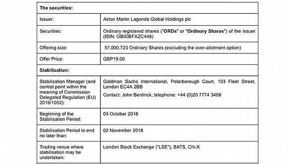 每股定价19英镑 阿斯顿马丁正式登陆伦敦交易所