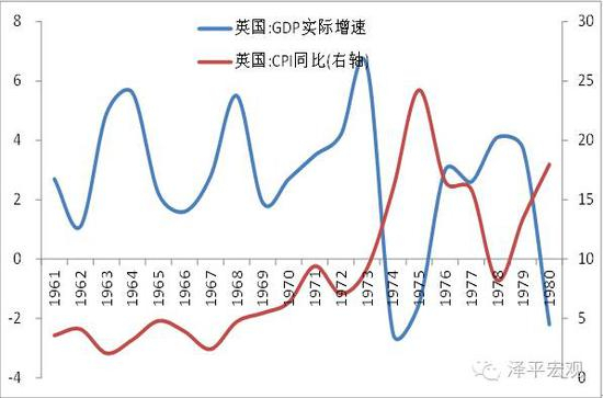 70年代,英国经济低迷,又遭遇石油危机和布雷登森林体系瓦解。面对困境,英国政府依然坚持凯恩斯的宏观调控政策,通过宽松的财政和货币政策刺激需求,来恢复经济增长。但英国面临的是供给侧结构性和体制性问题,而非外部性和周期性问题。因此,需求侧刺激不但没有提高经济增速,反而造成持续的高通胀,使英国陷入了长达10年的经济滞涨。
