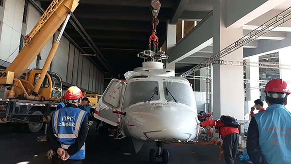 由于进口博览会主场馆所在地国家会展中心属于禁飞区域,这次AW189直升机进馆参展是采用地转运输方式,即先从深圳飞抵上海高东直升机机场,再由高东机场飞抵上海霍克太平洋商务航空中心,然后拆卸后运进展馆再组装。