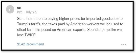 “所以说……除了要因为特朗普的关税政策为进口商品花更多的钱,美国人交的税还要用来抵消美国出口商品的关税。我怎么觉得我们好像亏了两回呢。”