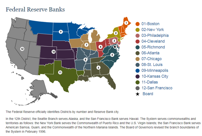 从地理上看,12家联邦储备银行偏东部。