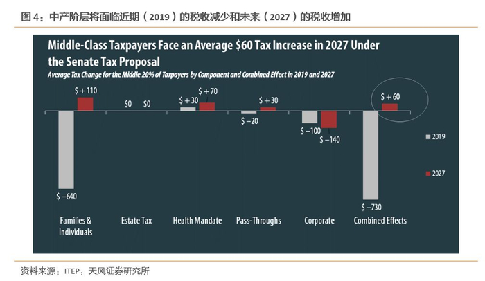 根据联合税收委员会(joint commission on taxation)的分析:2025年,80%的中产阶级要么加税,要么减税不到100美元;根据税收和经济政策研究所(ITEP)的分析,中产阶层在2027年将面临税收增加。(参议员:Amy Klobuchar)
