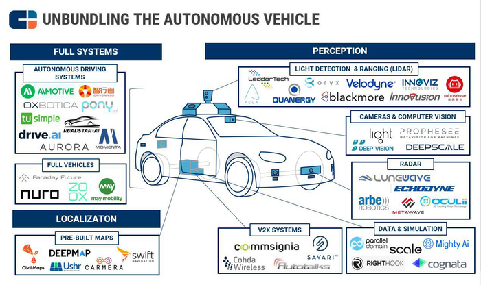 CB Insights拆解分析了实现无人驾驶的诸多技术,并介绍了有望让无人驾驶汽车更先进、更低成本、更容易扩展的几家初创公司。