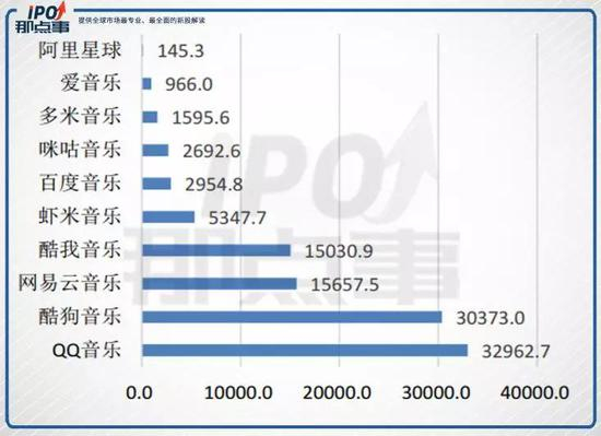 根据questmobile的统计,2018 年 2 月在线音乐 APP 的月活跃度用户规模如下: