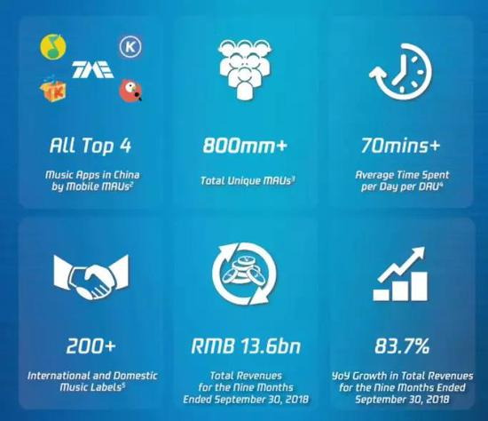 2018年前三季度,腾讯音乐娱乐实现收入135.88亿元,净利润27.07亿元,调整后利润32.57亿元。