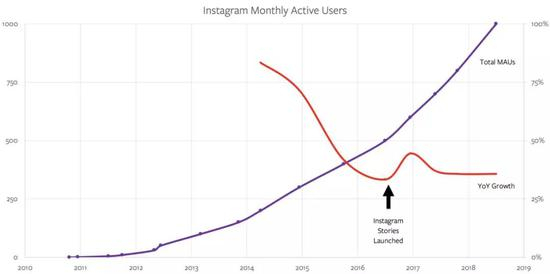 从第一天起,Ins 的 Story 功能就比 Snapchat 优秀。最终,它不只有效遏制了 Snapchat 的起势,也加快了自己的发展: