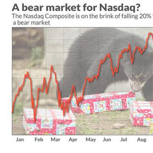 纳指盘中一度跌入熊市,从8月30日的高点8133.30点跌至周四的低点6484.04点。