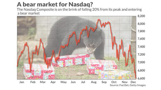 新浪美股讯 北京时间12月21日,忘掉圣诞老人的反弹吧,股市正在抵御近期记忆中最糟糕的12月,而现在纳指正处于熊市的边缘。从某种程度上来说,这可能是历史上持续时间最长的美股牛市结束的非正式开始。