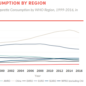 中国的烟草消费量在全球颇为显眼。由美国癌症协会和世界肺健基金会发布的《烟草图册》数据显示,早在2016年,中国烟民购买的烟草就占到了全世界总消费量的40%以上: