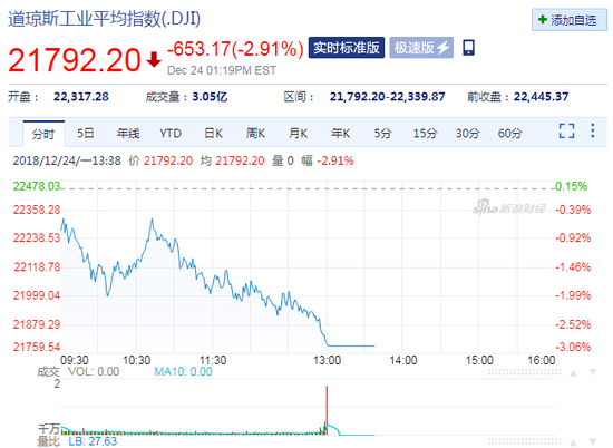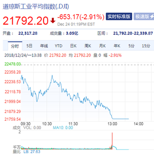在传出“国家队”开会和财政部官员消息期间,本周一美股继上周五大跌后再度重挫,道指破位下跌,早盘一度跌超400点,跌破22000点,标普和纳指一度跌超1%,恐慌指数VIX创近十个半月新高。盘中纳指一度转涨,但截至更新重回跌势,道指跌超500点,将创史上最差圣诞节前一交易日表现。