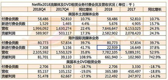 而Netflix依靠白手起家的DVD租赁业务,正在不断萎缩,2018年美国的DVD租赁业务营收约3.7亿美元,同比下降19%,贡献利润2.1亿美元,同比下降14.3%。