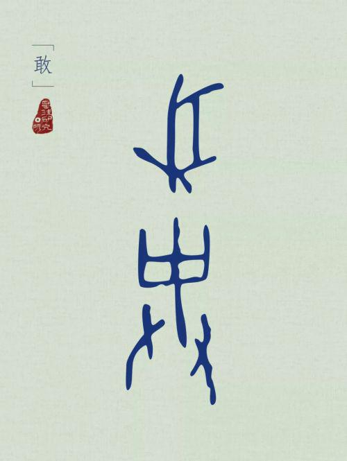 (敢字甲骨文,形为人手持叉刺豕,制图@郑伯容/星球研究所)