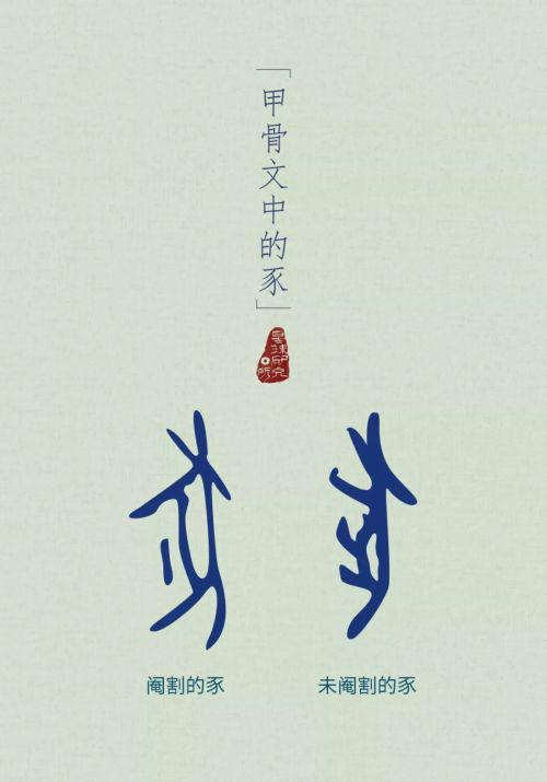 (甲骨文中阉割和未阉割的豕字,腹下那一划与身子相连的是没有阉割的,而那一划与身子稍有断开的,是阉割过的,制图@郑伯容/星球研究所)